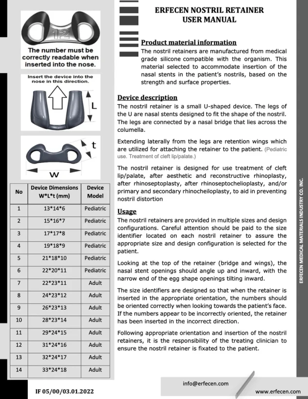 نوستریل ریترنر سیلیکونی با گرید بهداشتی در سایز سایز های مختلف تولید میشود. این کالا بهد از عمل های جراحی بینی مورد استفاده قرار میگیرد.